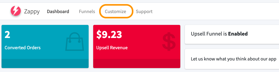 1. Open the 'Customize' tab to customize everything related to the Upsell Funnel.