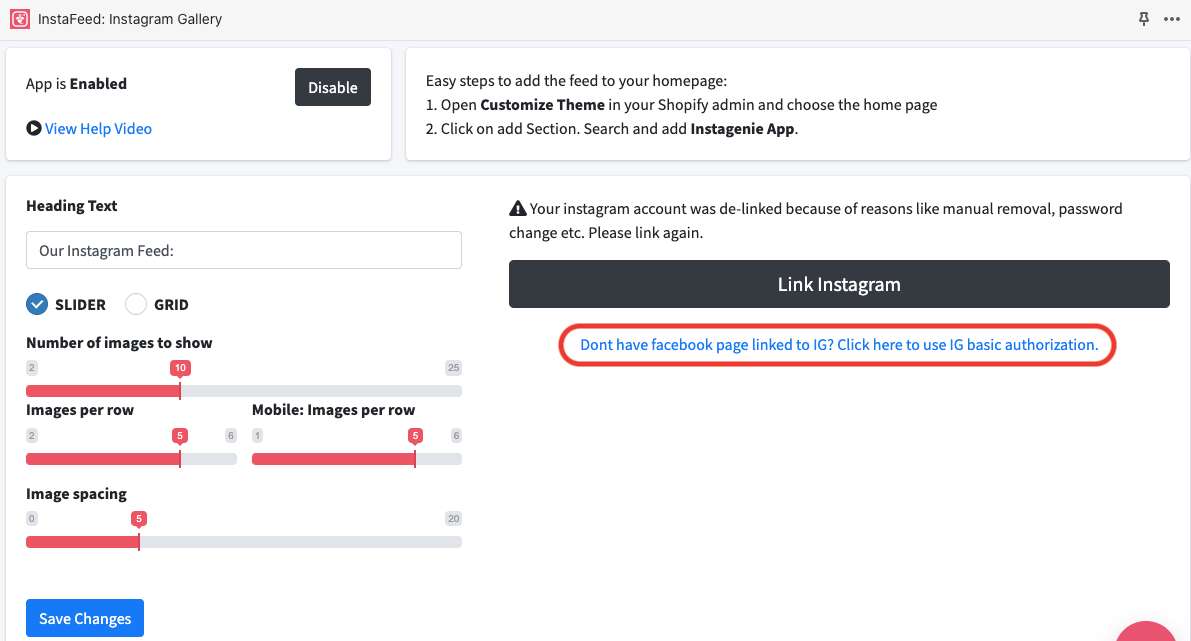 Step 1: Click on 'Dont have Facebook page linked to IG? Click here to use IG basic authorization.'