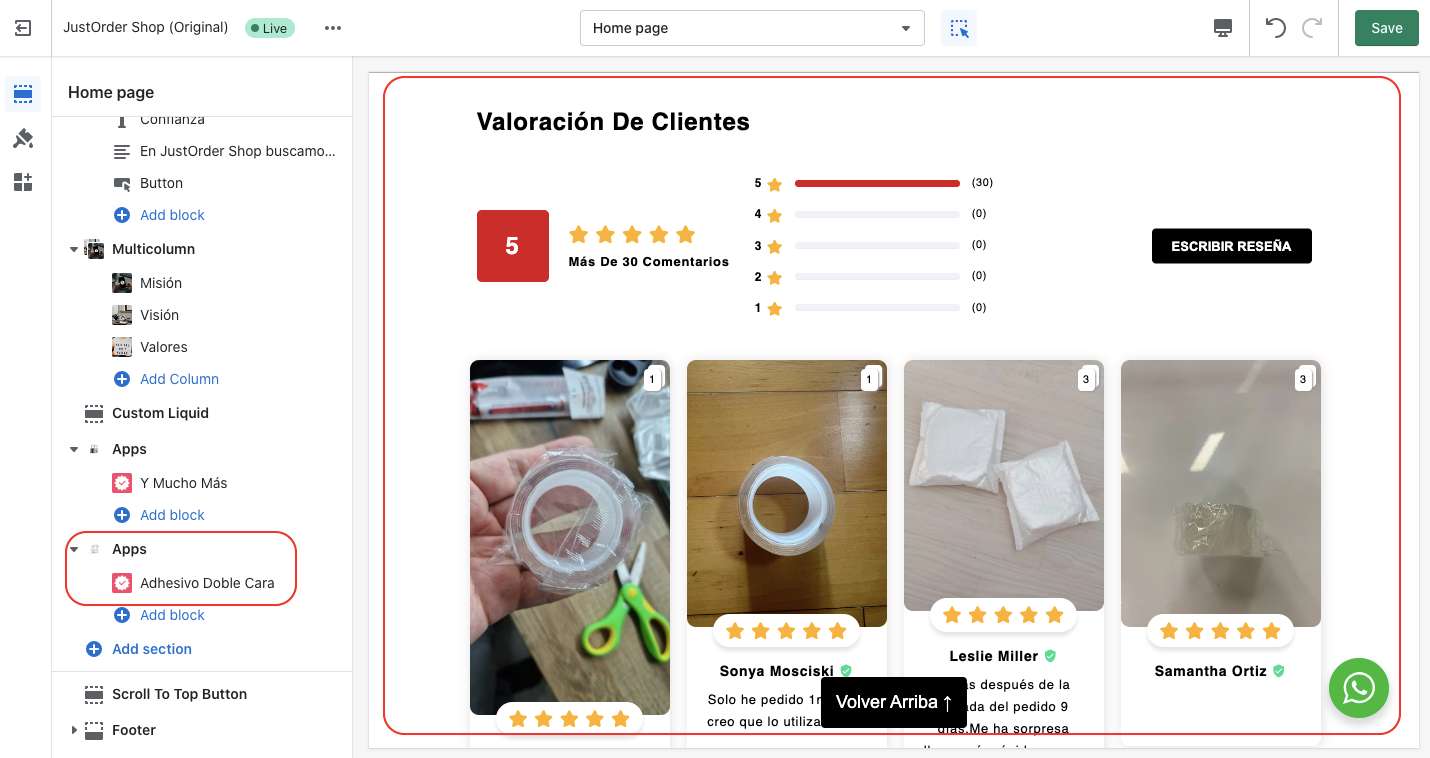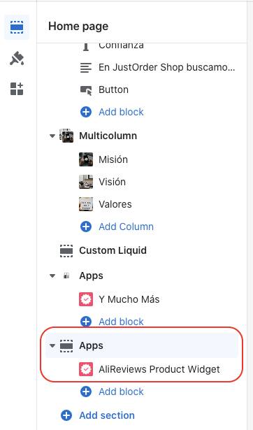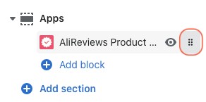 The position of the AliReview Widget can be easily changed from the Customize Theme Section of the Shopify Store.