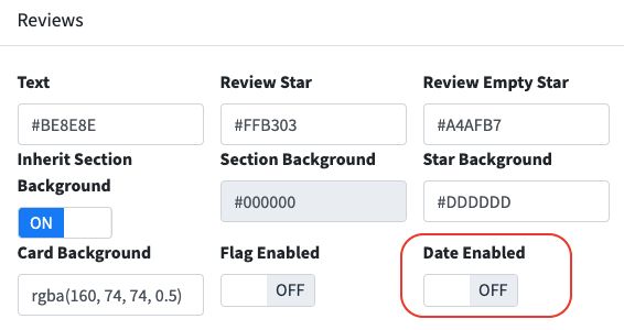 Scroll down the Reviews section and tun-off the Date Enabled option.