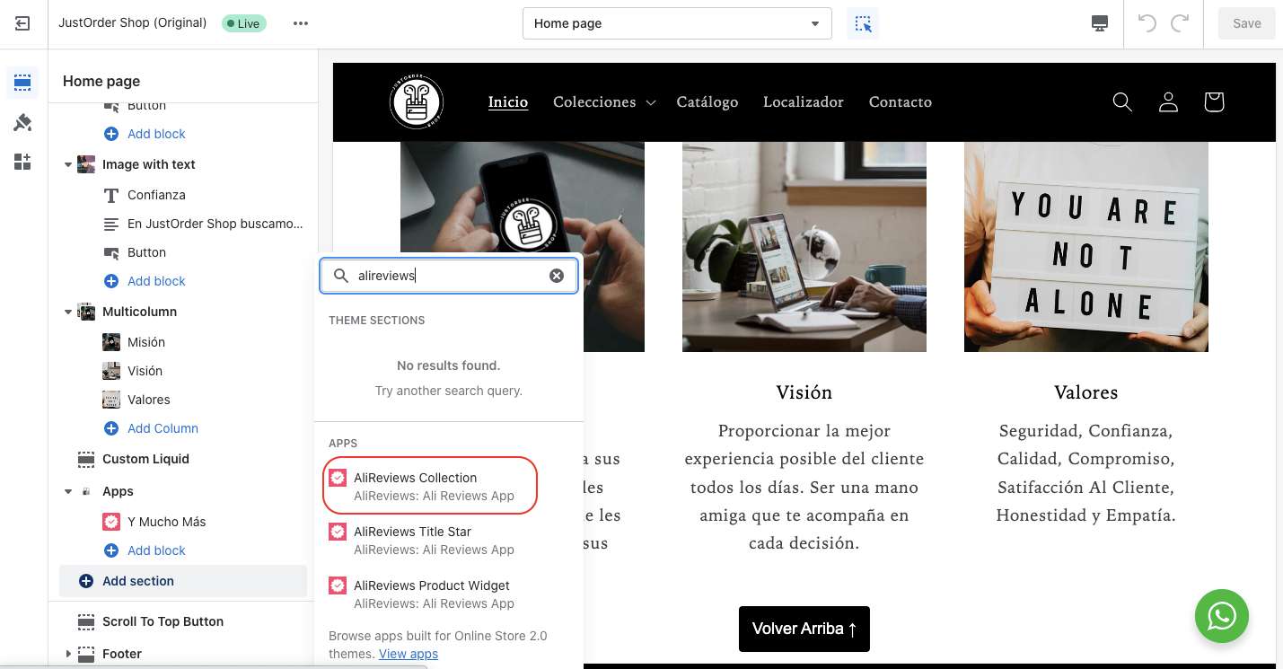 Sometimes, the 'section' option won't be visible or even after adding the AliReviews Collection, the review stars won't be visible.