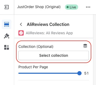 If this doesn't work then you can click on the AliReviews Collection and you can specify the collection.