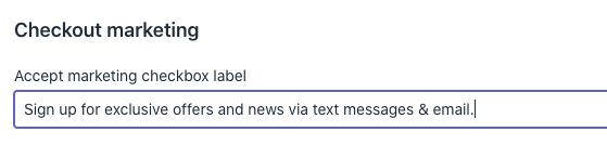Step 3/5 - Using the CTRL+F shortcut find Checkout marketing on the page. Under Accept marketing checkbox label, paste the following text in the box: