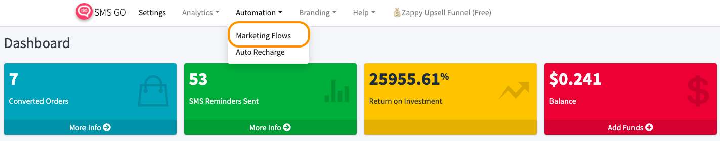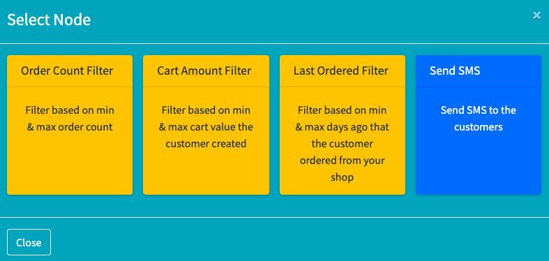 For the purpose of this knowledgebase article, let's say I want to target only the cart abandoners, without any further segmentation. I will just add Send SMS to the flow.
