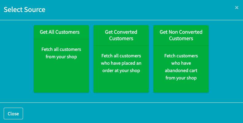 You'll be asked to choose the customer segment that you want to send the SMS campaign to, as shown below. Let's say I want to send SMS to all my existing customers - I'll select Get All Customers.