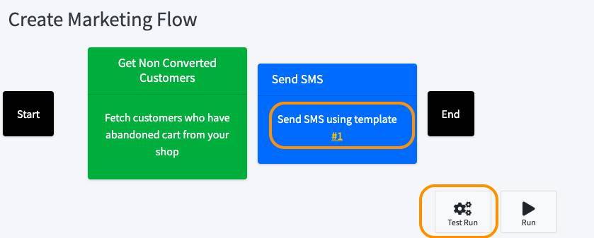Once done, you'll be asked to select the SMS template. We'll select the one that we created in the first step. Once done, click on Test Run to check how many customers will the SMS be sent to.