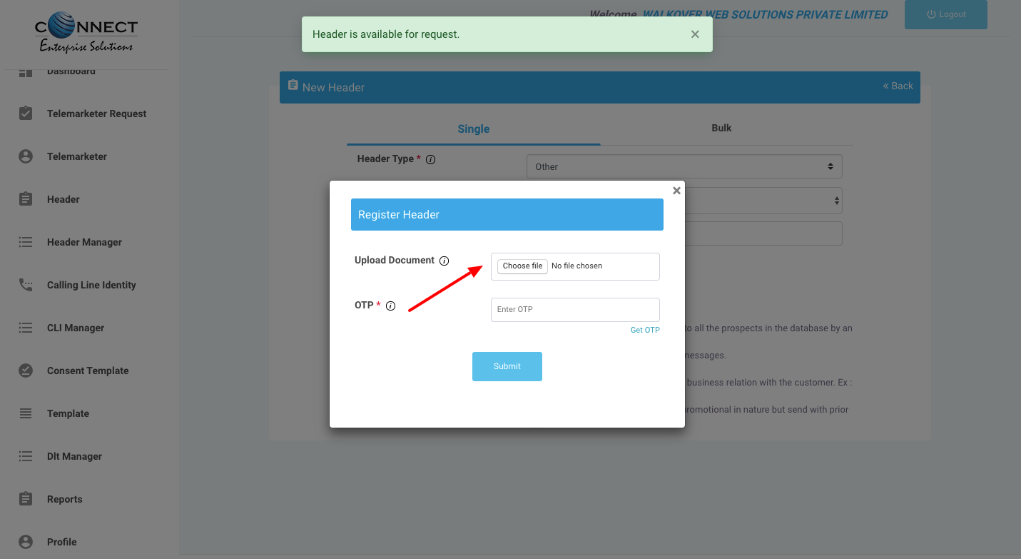 - If available, but your Sender Id does not match your Company Name, then upload a document to prove the co-relation between Company Name and Header.(If Alphabet Inc. needs Sender ID as Google, they need to prove co-relation between Sender Id GOOGLE and Alphabet.) (If Operator is not satisfied with co-relation proof, your Header may not be approved)